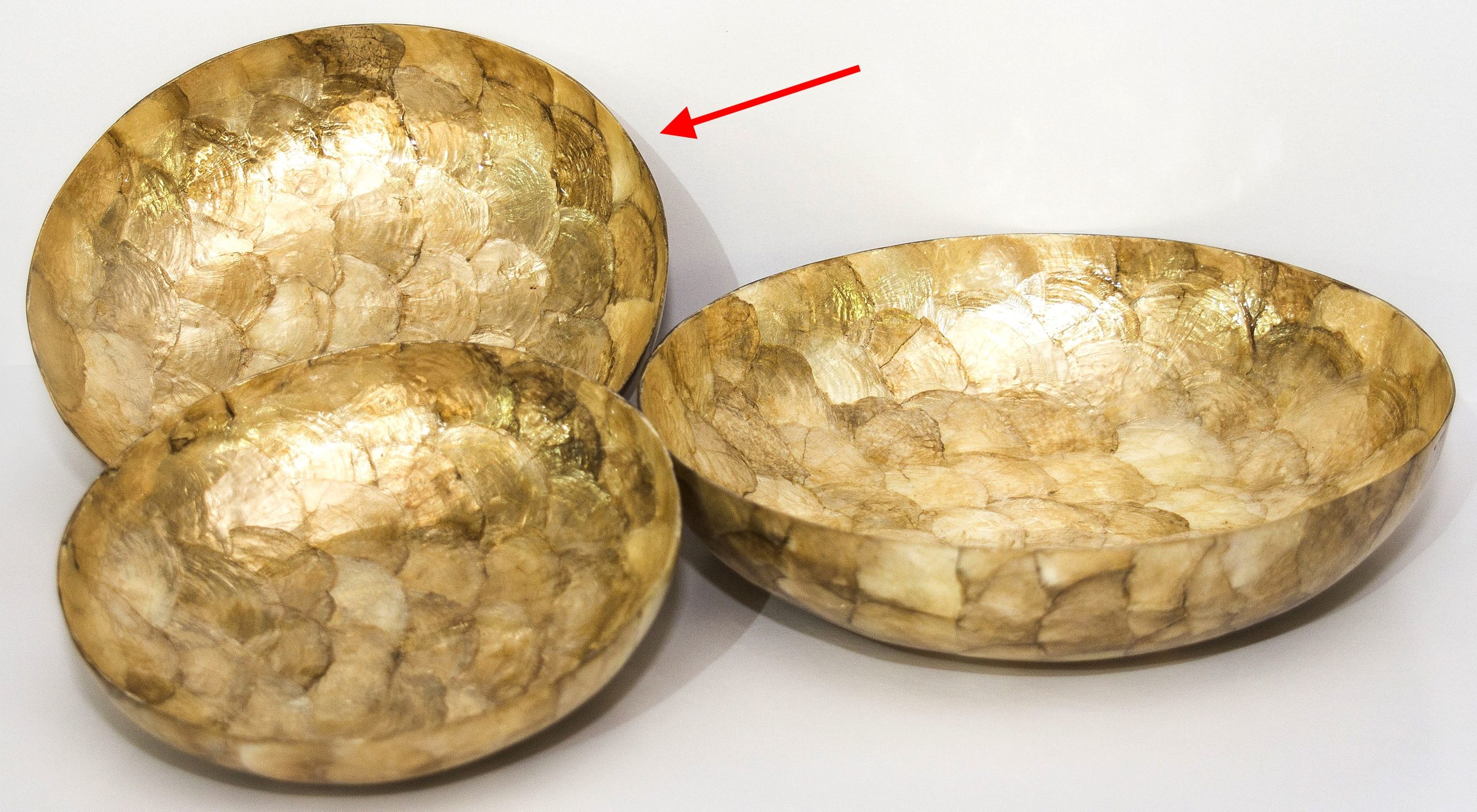 A classic bowl made of shiny, golden capiz. 31 cm diameter.