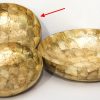 A bowl in modern design made of ‘baloko’ shells with a decoration of golden capiz. 31 x 25.5 x 13 cm height.
