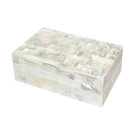 The elegant ISABELLA jewelry box is made in the Philippines. Handcrafted from genuine mother of pearl, each piece is cut to precise dimensions and assembled with great accuracy. A true precision work. Dimensions: W x D x H: 12.6 x 7.3 x 4.3 cm.