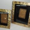 A classic photo frame in golden capiz. 12.5 x 18 cm. </